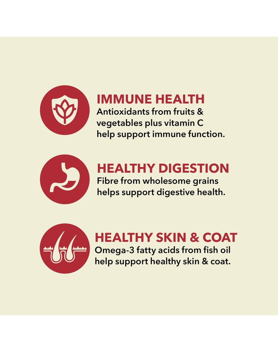Toit, mis on välja töötatud koerte liigipõhiste vajaduste rahuldamiseks. Valmistatud kvaliteetsetest koostisosadest, mis tagavad kõrge seeditavuse ja hea maitseomadused. Sobib tundlikele koertele. Suur liha osakaal toidus tagab kõrge loomse valgu sisalduse. Koertele on kõige parem pakkuda valku mitmest allikast, selles toidus on see toores lambaliha, dehüdreeritud lambaliha ja sealiha. Selline mitmekesisus tagab, et kõik nõuetekohaseks kasvuks vajalikud ained on tagatud. Kõrge loomse valgu sisaldus toetab regenereerimist, samuti lihasmassi, luude ja liigeste ehitamist.