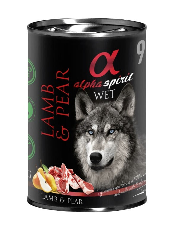 ALPHA SPIRIT konservai šunims su ėriena ir kriaušėmis 400 g x 6 vnt