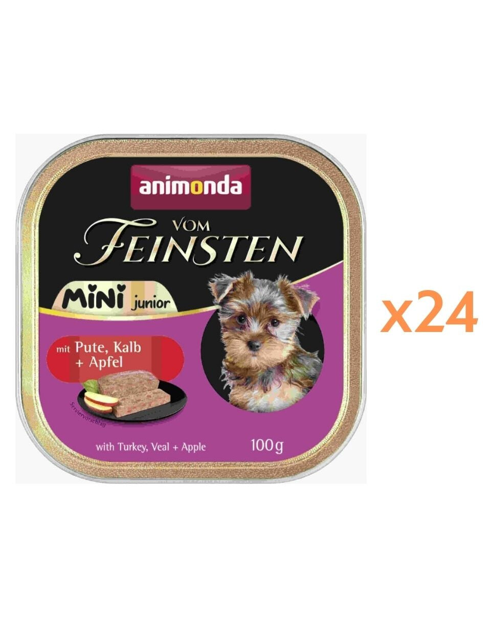 �3Cstrong�3EVom Feinsten Mini Junior kalkun + vasikali + õun on täisväärtuslik toit mugavas ühekordses portsjonis, mis on spetsiaalselt välja töötatud väikeste tõugude kutsikatele.�3C/strong�3E Hoolikalt koostatud retsept tagab tasakaalustatud toitumise ja erakordse maitse, mis toetab noore koera õiget arengut.�3Cbr /�3E�3Cbr /�3EKalkuni ja vasikali õrn segu koos õunaga annab toidule erakordse maitse ja toob mitmekesisust igapäevasesse menüüsse. Valitud koostisosad pakuvad kasvamiseks ja arenguks vajalikke toitaineid.�3Cbr /�3E�3Cbr /�3E�3Cstrong�3EPeamised omadused:�3C/strong�3E�3Cbr /�3E