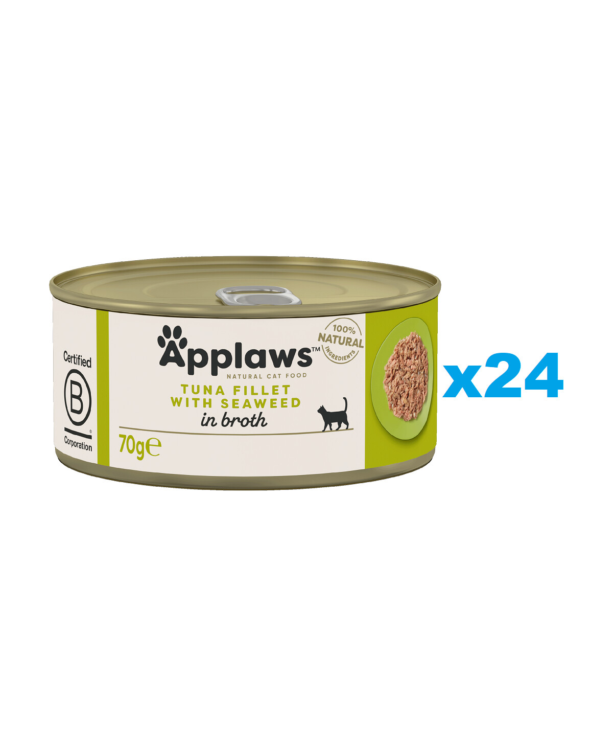 Tuunifilee 70%, riis 1%, merevetikad 5%, kalapuljong 24%. Ilma lisaaineteta.