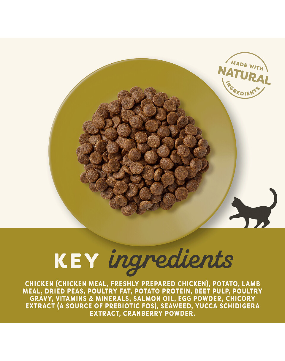 Kuivatatud kana (48%), kuivatatud lambaliha (20%), kuivatatud kartul, kondita kanahakkliha (12%), peedipulp, linnukaste, lõheõli, vitamiinid ja mineraalained, kuivatatud munad, taimne tselluloosikiud (0,03%), naatriumkloriid, kaltsiumkarbonaat, merevetikad, jõhvikad, dl-metioniin, kaaliumkloriid, yucca ekstrakt, tsitrusviljade ekstrakt, rosmariini ekstrakt.