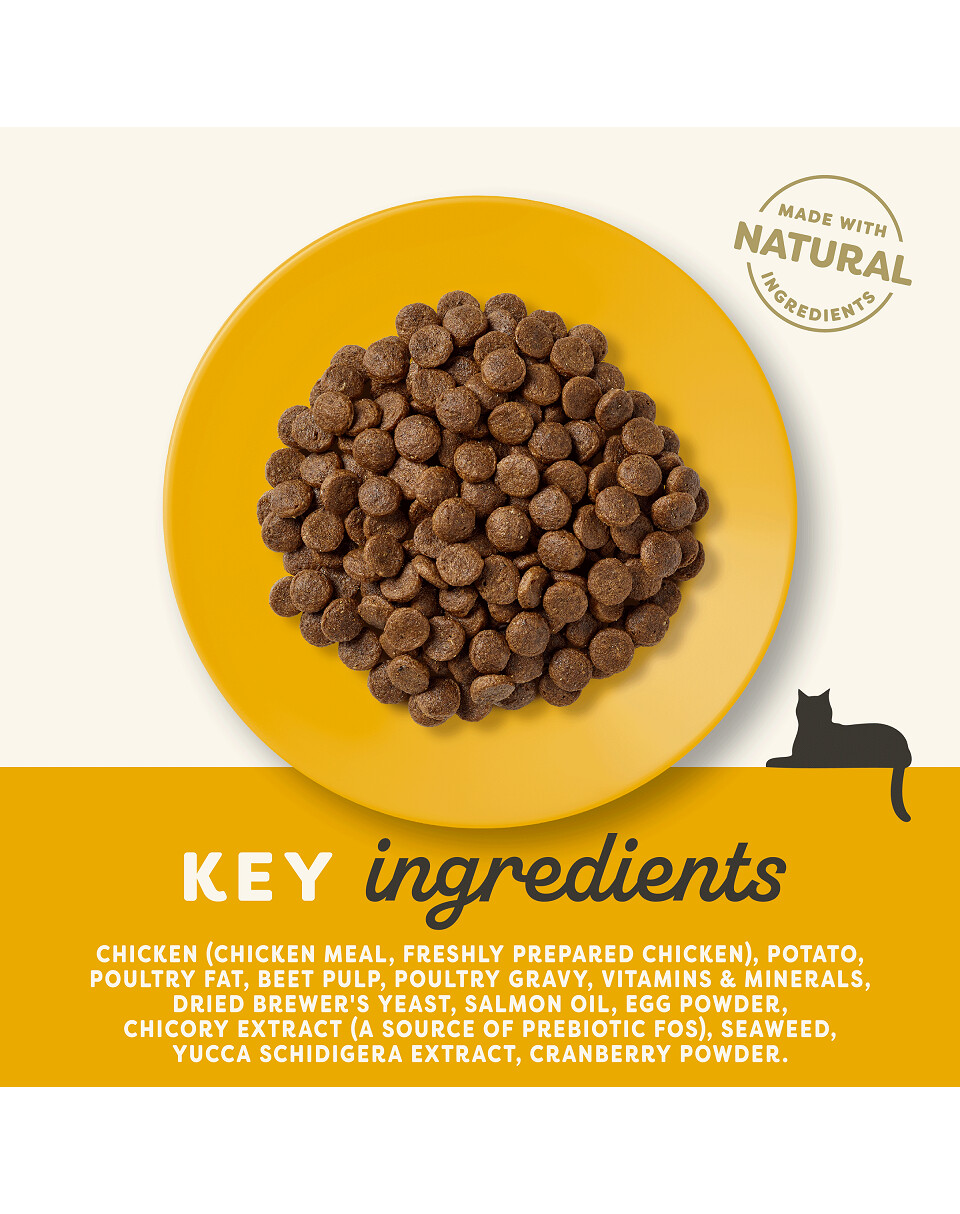 Kanajahu (67%), värskelt jahvatatud kodulinnuliha (12%) (looduslik glükosamiini ja kondroitiini allikas), kartulid, peedipulp, õllepärm, linnukastme (1%), taimse tselluloosi kiudained (0,03%), lõheõli, kookosõli (looduslik keskmise ahelaga rasvhapete triglütseriidide allikas), vitamiinid ja mineraalained, kuivatatud munad, naatriumkloriid, kaltsiumkarbonaat, merevetikad, jõhvikad, dl-metioniin, kaaliumkloriid, yucca ekstrakt, tsitrusviljade ekstrakt, rosmariini ekstrakt.