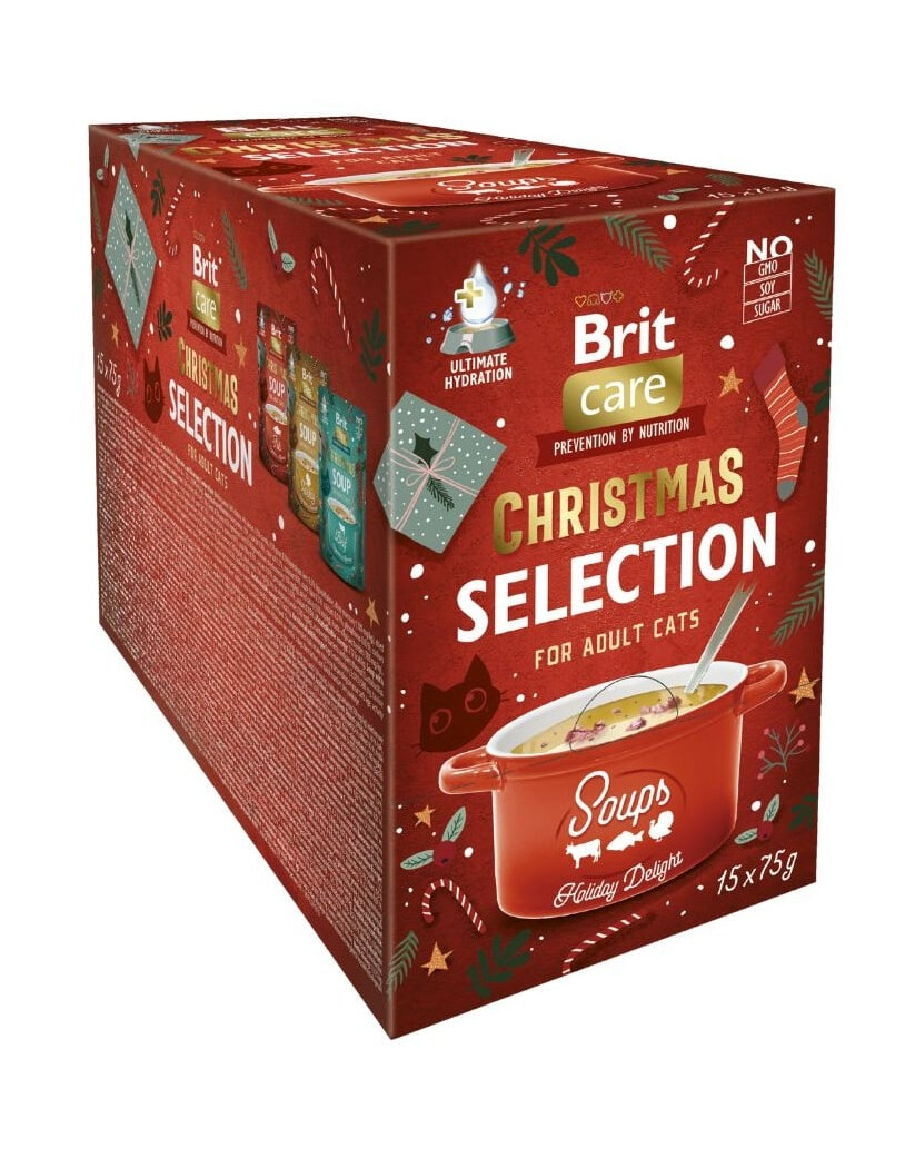 Paku oma kassile erilist jõulumenüüd Brit Care Cat Christmas Soup Mixiga. 15 maitsva supi komplekt ühendab õrna liha, köögiviljad ja ürdid, luues kergesti seeditava, loodusliku ja niisutava eine, mis on ideaalne jõulude ajaks.