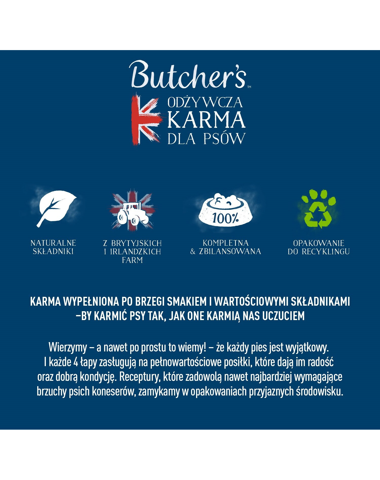 Butcher’s Original on toidud, mis on loodud täiskasvanud koerte igapäevaste toitumisvajaduste rahuldamiseks. Kõik tooted on valmistatud looduslikest koostisosadest ja pakendatud keskkonnasõbralikesse pakenditesse.