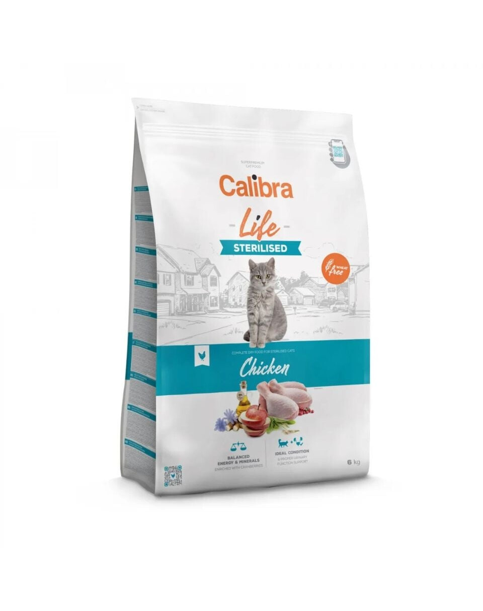 Calibra Cat Life Sterilised Chicken on täisväärtuslik, teraviljavaba superpremium toit, mis on loodud spetsiaalselt täiskasvanud kassidele pärast steriliseerimist või kastreerimist, põhinedes kõrgel kanaliha sisalduse, sealhulgas värske liha.