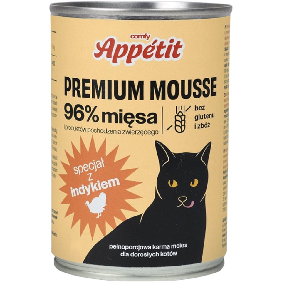 Comfy Appetit Premium Mousse sisaldab 96% liha ja loomseid koostisosi (sh 28% kalkunit), ülejäänud osa koosneb vitamiinidest ja mineraalidest.