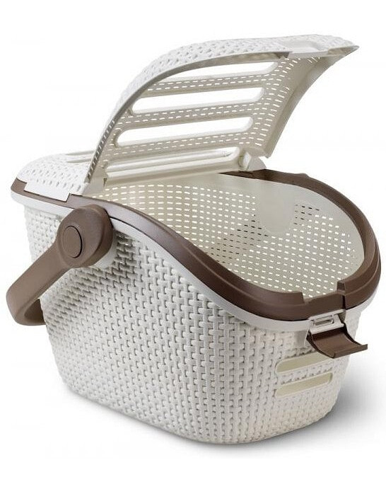 Käepidemega korvi kujuline kandja väikestele koertele ja kassidele.