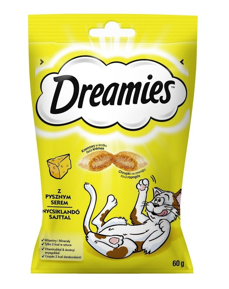 Kassid armastavad Dreamiesi maiuspala närida, et jõuda pehme täidise juurde. Selles variandis on pastakad maitsvad juustu maitsega, ilma kunstlike lõhna- ja maitseaineteta. Dreamies on ideaalne võimalus üllatada oma lemmiklooma väikese maiuspalaga, andes talle samal ajal annuse vitamiine ja mineraalaineid, mis aitavad hoida teda tervena ja vormis. Maiuspala sobib üle 8 nädala vanustele kassidele.