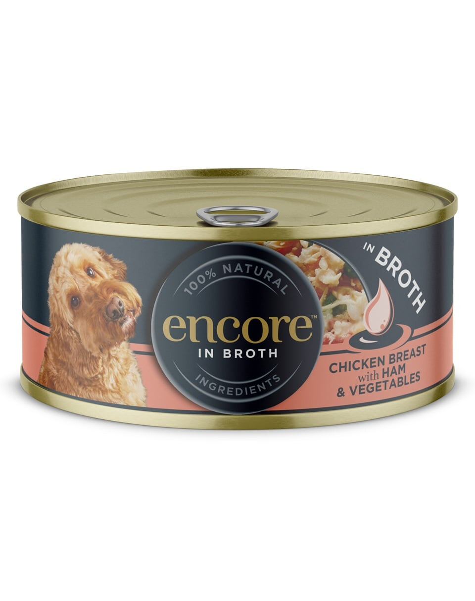 Looduslik, maitsev täiendav toit täiskasvanud koertele, valmistatud õrnast kanafileest, segatud sinki ja köögiviljadega, serveeritud kerge, aromaatse puljongiga. Lihtne retsept põhineb kvaliteetsetel koostisosadel, ilma kunstlike värvainete, säilitusainete ja tarbetute täiteaineteta.
