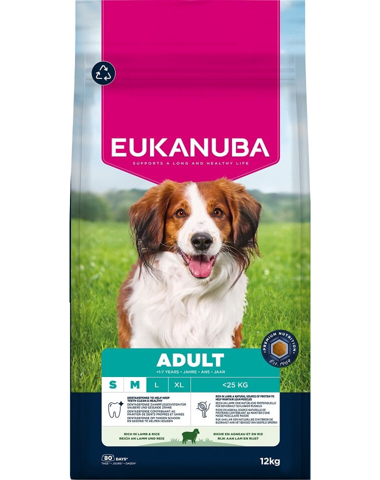 EUKANUBA Adult Small & Medium Breeds Lamb & Rice – kuivtoit väikeste ja keskmise suurusega koertele
