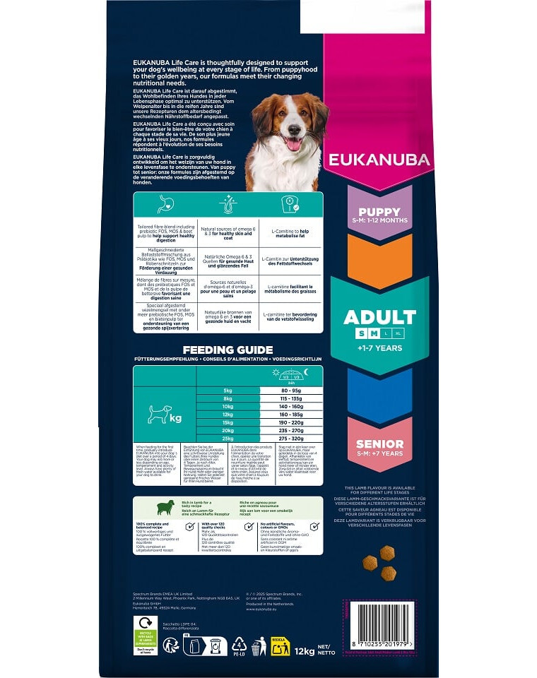 EUKANUBA Life Care on premium toiduseeria, mis on välja töötatud teaduslike uuringute põhjal, et toetada koerte vajadusi igas eluetapis. Variant Adult Small & Medium Breeds Lamb & Rice on loodud täiskasvanud väikeste ja keskmise suurusega koertele vanuses 1–7 aastat.
