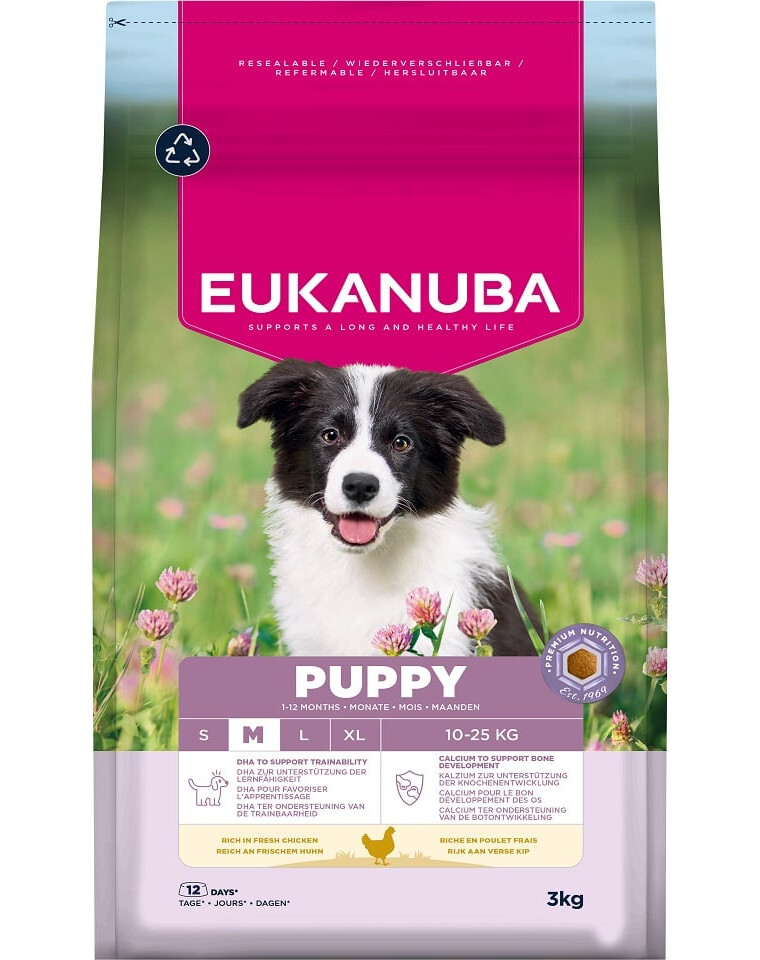 EUKANUBA Puppy Medium Breeds Chicken – kuivtoit keskmise tõu kutsikatele, rikkalik värske kana