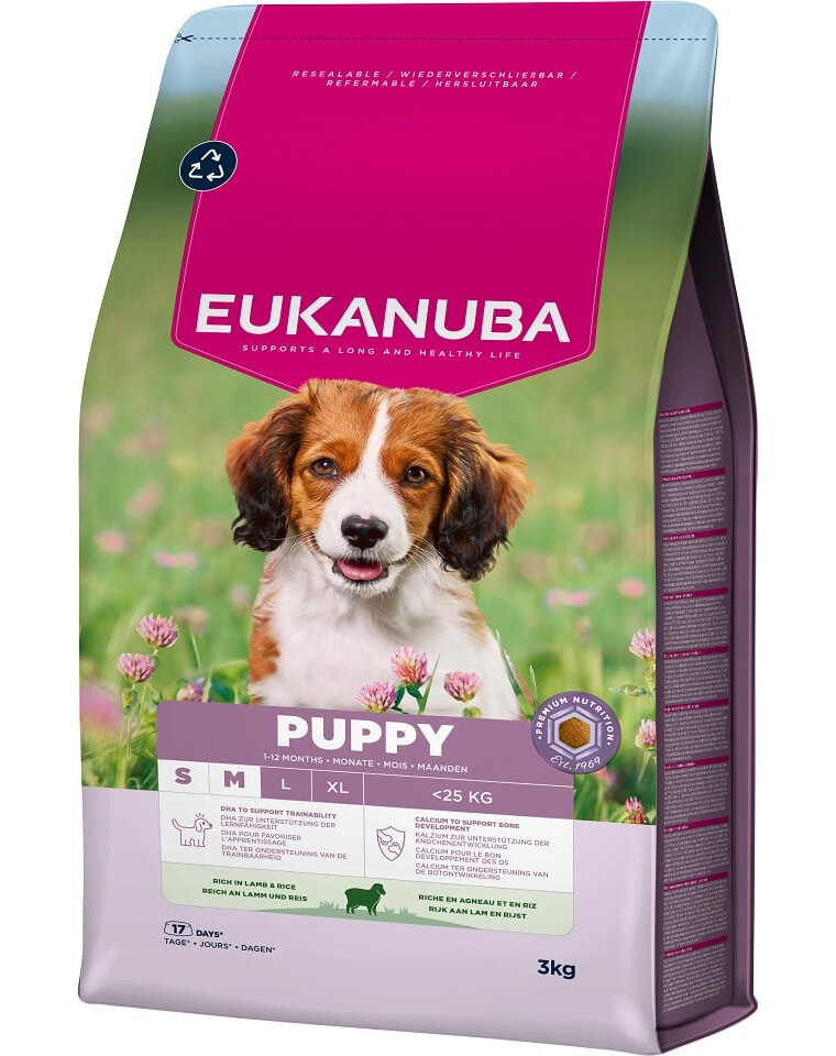 See EUKANUBA kuivtoit kutsikatele, rikkalik lambaliha ja riis, on 100% täisväärtuslik ja tasakaalustatud ning ideaalne väikeste ja keskmise tõu koertele vanuses 1–12 kuud.