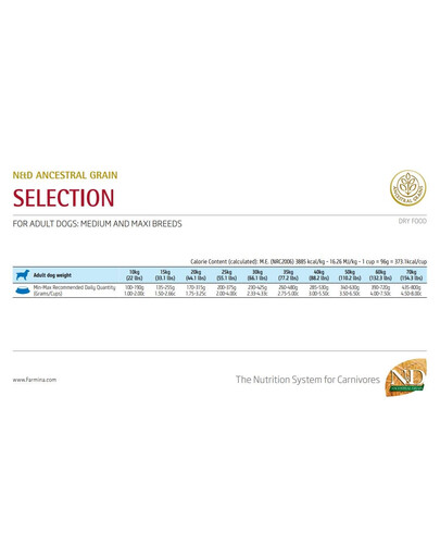 Fotol toodud annustamistabel. Näidatud annus on soovituslik ja seda tuleks kohandada teie lemmiklooma jaoks individuaalselt, võttes arvesse lemmiklooma aktiivsustaset ja tervislikku seisundit.