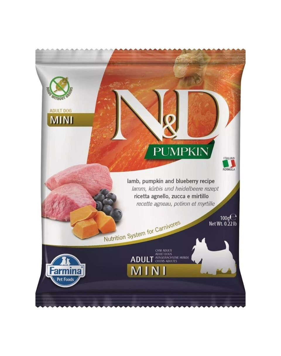 Täistoit täiskasvanud koertele, lambaliha, kõrvits ja mustikas.