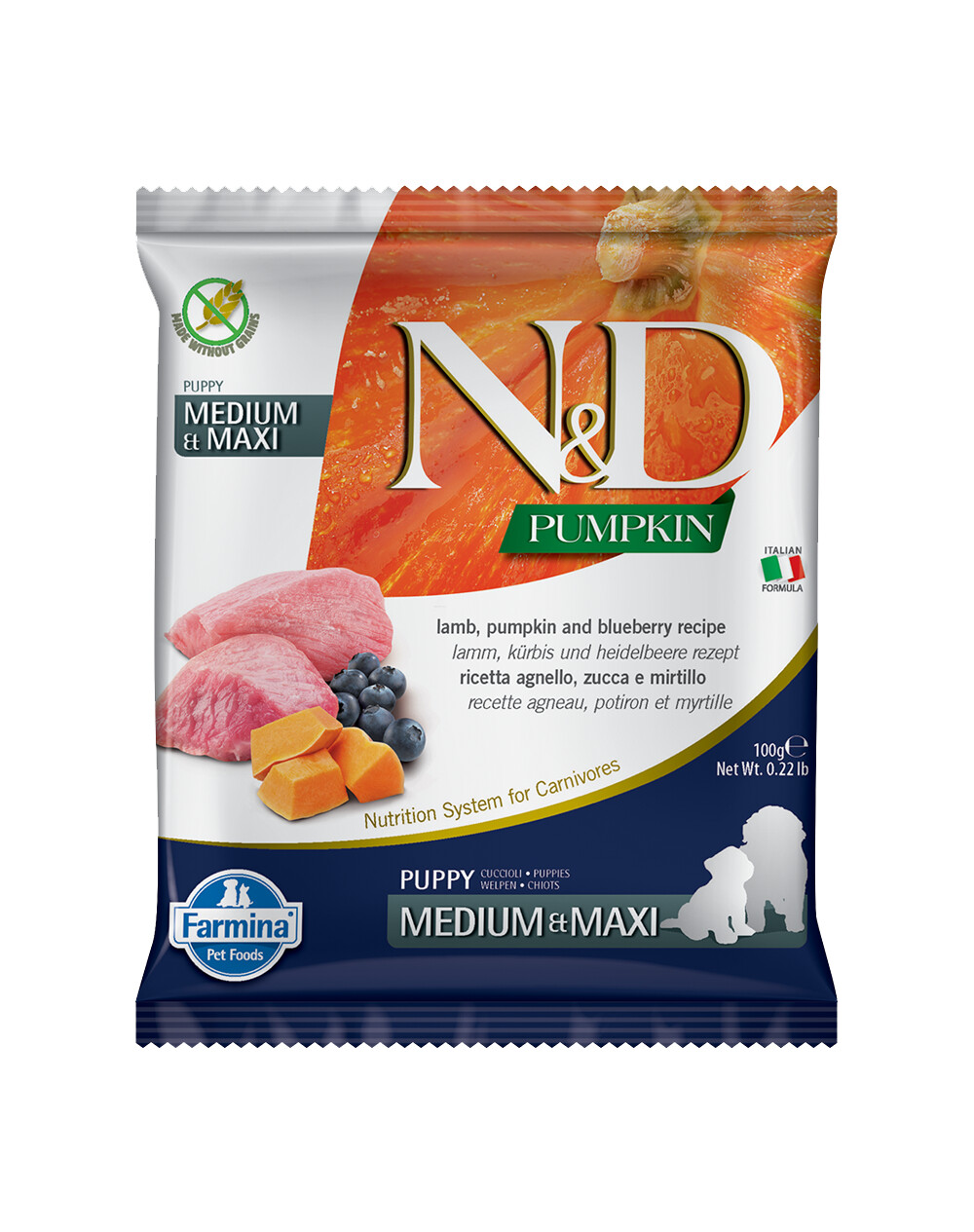 Täistoit kutsikatele ja tiinetele või imetavatele emastele, lambaliha, kõrvits ja mustikas.