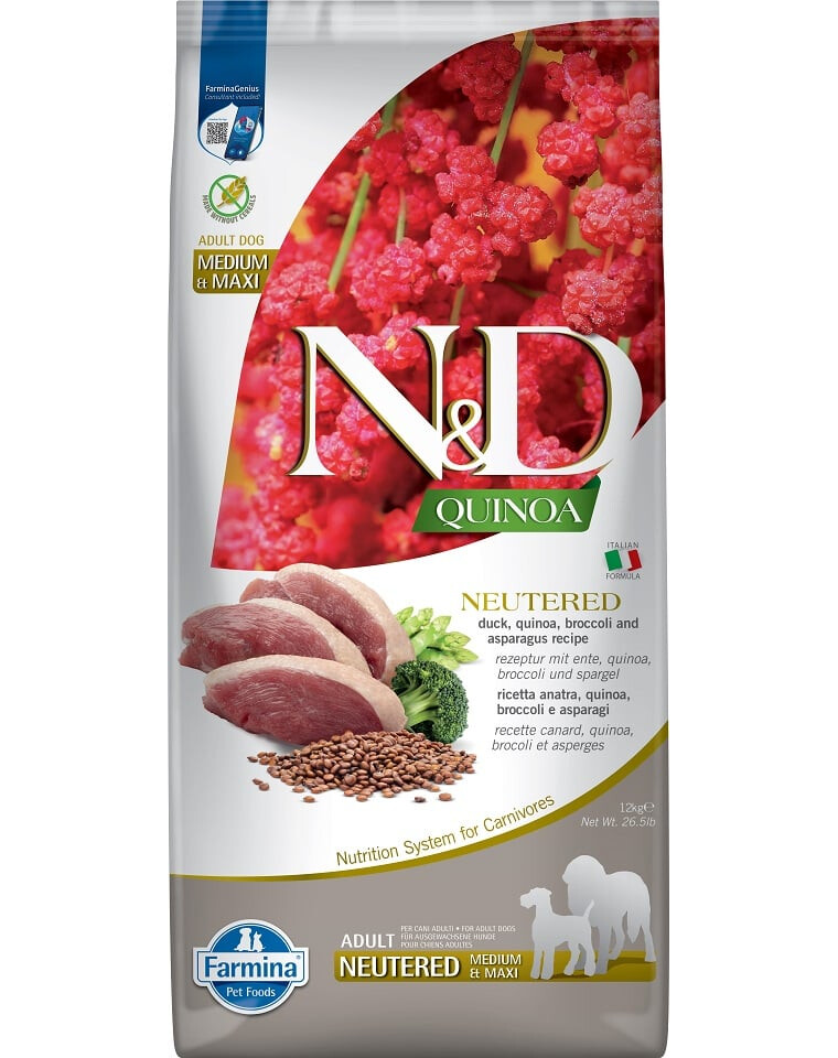 Koostis: part ilma kondita (20%), dehüdreeritud pardivalk (20%), jamss, kuivatatud peedipulp, kuivatatud terve muna, ekstraheeritud kinoa seemned (8%), kanarasv, dehüdreeritud munavalge, hernevalge, linaseemned, kalaõli (kuld), kuivatatud brokoli (2.5%), kuivatatud spargel (2,5%), frukto-oligosahhariidid, pärmiekstrakt (manno-oligosahhariidide allikas), tselluloosipulber, kuivatatud õllepärm, paanikaseemned, kaltsiumsulfaatdihüdraat, kaaliumkloriid, naatriumkloriid, glükosamiin, kondroitiinsulfaat.