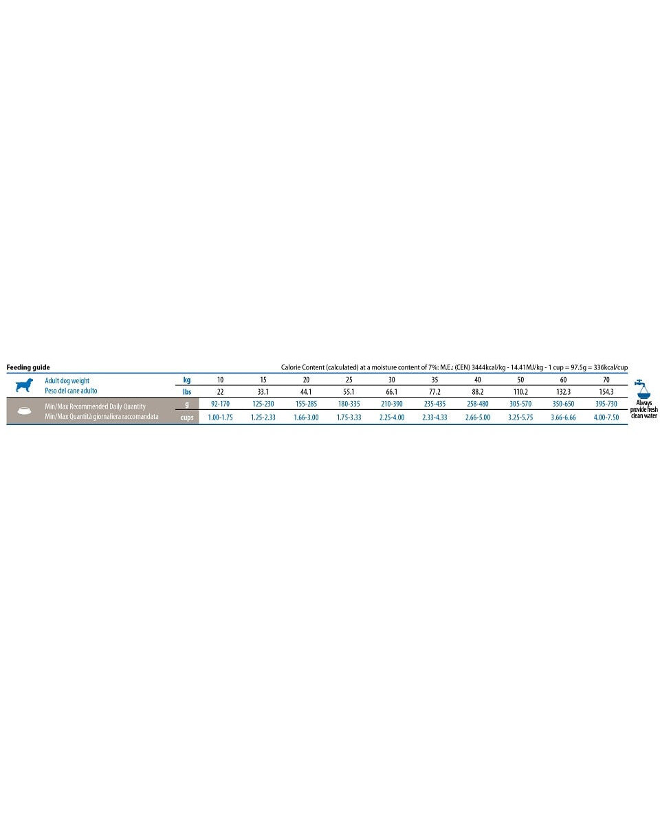 60%; naatrium 0,35%; magneesium 0,10%; oomega-6 rasvhapped 2,00%; oomega-3 rasvhapped 0,30%; DHA 0,10%; EPA 0,05%; glükosamiin 1200mg/kg; kondroitiinsulfaat 900mg/kg.