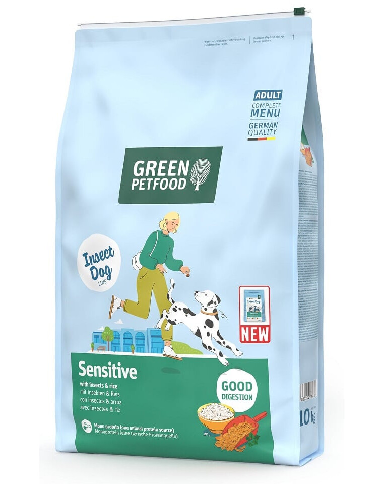 Green Petfood Sensitive with Insects & Rice on kergesti seeditav premium toit, mis on loodud spetsiaalselt täiskasvanud koertele, kellel on tundlik seedesüsteem. Selle ainulaadne retsept põhineb putukate valgul, mis on harva kasutatav, kuid samas erakordselt hästi talutav loomse valgu allikas. Seetõttu sobib toit ideaalselt koertele, kellel on toiduallergiad või talumatused.