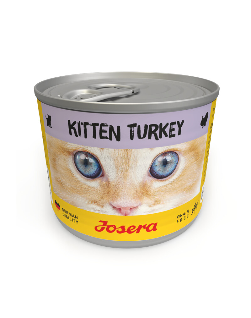Isegi kõige väiksemad kassipojad teevad valju, näljaseid miausi, kui neile söödetakse meie Josera Kitten Turkey märgtoitu! Pole ime, sest see mahlane maiuspala koosneb 70% kalkunist ja kanast ning maitsvast linnulihapuljongist. Teraviljavaba koostis annab lõheõli kaudu olulisi oomega-3-rasvhappeid ja tänu spetsiaalsetele taimsetele kiudainetele võib see isegi ennetada vere hüübimist.