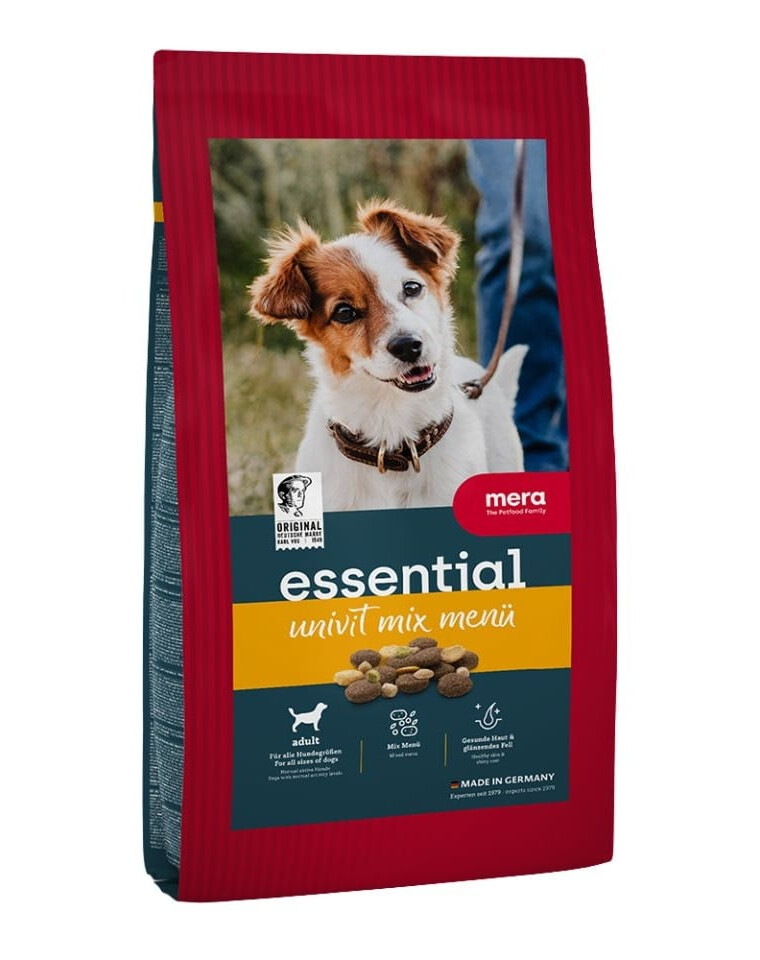 MERA Essential Univit Mix Menu on ideaalne valik täiskasvanud koertele, kelle aktiivsus on normaalne. Koostatud tõestatud perereceptide järgi, ühendab see endas kõrge maitsvuse, tervislikud koostisosad ja täieliku igapäevase toiteväärtuse.