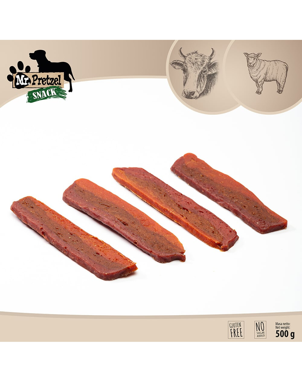 Mr. Pretzel Kolme maitsega Veiseliha, Lambaliha, Jõehobune 500g on kõrge kvaliteediga, äärmiselt maitsvad, lihased maiustused teie neljajalgsele sõbrale. Mr. Pretzel maiustuste sari võimaldab teil hellitada oma lemmikut tervisliku, funktsionaalse ja mugava suupistega. Tänu kõrge kvaliteediga koostisosade kasutamisele pakuvad nad hästi omastatavat loomset valku, toetades teie koera tervet arengut. Mr. Pretzel maiustusi saab kasutada nii preemiana treeningu ja mängu ajal kui ka maitsva suupistena.