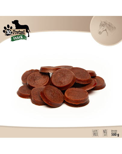 Mr. Pretzel Talarki hobus 500g on kõrgeima kvaliteediga, äärmiselt maitsvad, lihased maiustused teie neljajalgsele sõbrale. Mr. Pretzel maiustuste sari võimaldab teil hellitada oma lemmiklooma tervisliku, funktsionaalse ja mugava suupistega. Tänu kvaliteetsete koostisosade kasutamisele pakuvad nad hästi seeditavat loomset valku, toetades teie koera tervet arengut. Mr. Pretzel maiustusi saab kasutada nii preemiana treeningu ja mängu ajal kui ka maitsva suupistena.