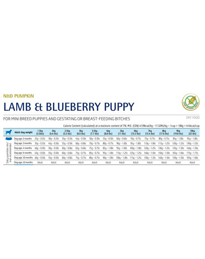 Täistoit kutsikatele ja tiinetele või imetavatele emasloomadele lambaliha, kõrvitsaga ja lisatud marjadega.