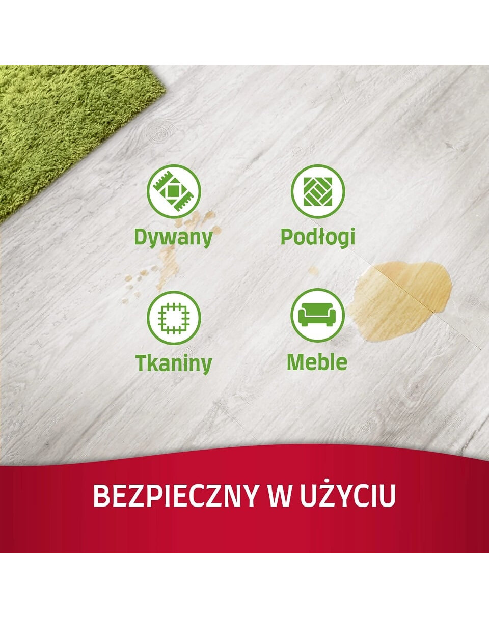Plekkide ja lõhna eemaldaja: puhastage plekk nii hästi kui võimalik ja seejärel leotage määrdunud ala põhjalikult tootega. Leotamine on oluline, sest see võimaldab tootel sügavamale tungida. Jätke 15 minutiks ja seejärel kuivatage plekk puhta lapiga.