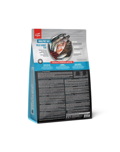 Kala - sealhulgas sardiinid, merluus, makrell, lest või heeringas - on rikkalik tervislike rasvade ning küllastumata rasvhapete Omega-3 ja -6 allikas. Need toetavad närvisüsteemi, peamiselt aju nõuetekohast toimimist, parandavad keha üldist seisundit, samuti südant ja nägemist ning hoolitsevad naha ja karvkatte terve väljanägemise eest. Puuviljad, köögiviljad ja maitsetaimed annavad väärtuslikke looduslikke vitamiine ja mineraalaineid. Ainus täiendav koostisosa toidus on tsink, vask ja koliin, ülejäänud osa pärineb tootmises kasutatavatest koostisosadest. Kogu retsept on loodud praeguste teadusuuringute ja liigi füsioloogia alaste teadmiste põhjal ning põhineb WholePrey põhimõtetel - see sisaldab liha, rupsi, luid, ehk teisisõnu, põhimõtteliselt terveid loomakorjuseid. Selline lähenemine tagab, et toit on täielikult tasakaalustatud. Toidus sisalduv loomne valk pärineb ainult kalast, mistõttu see toit sobib allergikutele. Seda võib kasutada ka välistusdiabeediaks, et välistada allergiat muude lihatoodete kui kala valkude suhtes.