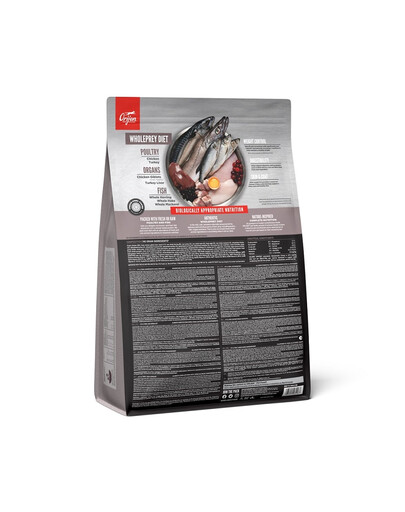 Kala - sealhulgas lesta, heeringas, makrell, merluusi ja sardiinid - on rikkalik tervislike rasvade ning küllastumata rasvhapete Omega-3 ja -6 allikas. Need toetavad närvisüsteemi, peamiselt aju nõuetekohast toimimist, parandavad keha üldist seisundit, samuti südant ja nägemist ning hoolitsevad naha ja karvkatte terve välimuse eest. Puuviljad, köögiviljad ja maitsetaimed annavad väärtuslikke looduslikke vitamiine ja mineraalaineid. Ainus täiendav koostisosa toidus on tsink, ülejäänu tuleb kasutatud koostisosadest. Kogu retsept on loodud praeguste teadusuuringute ja liigi füsioloogia alaste teadmiste põhjal ning põhineb WholePrey põhimõtetel - see sisaldab liha, rupsi, kõhre, tegelikult terveid loomakorjuseid. Selline lähenemine tagab, et toit on täielikult tasakaalustatud.