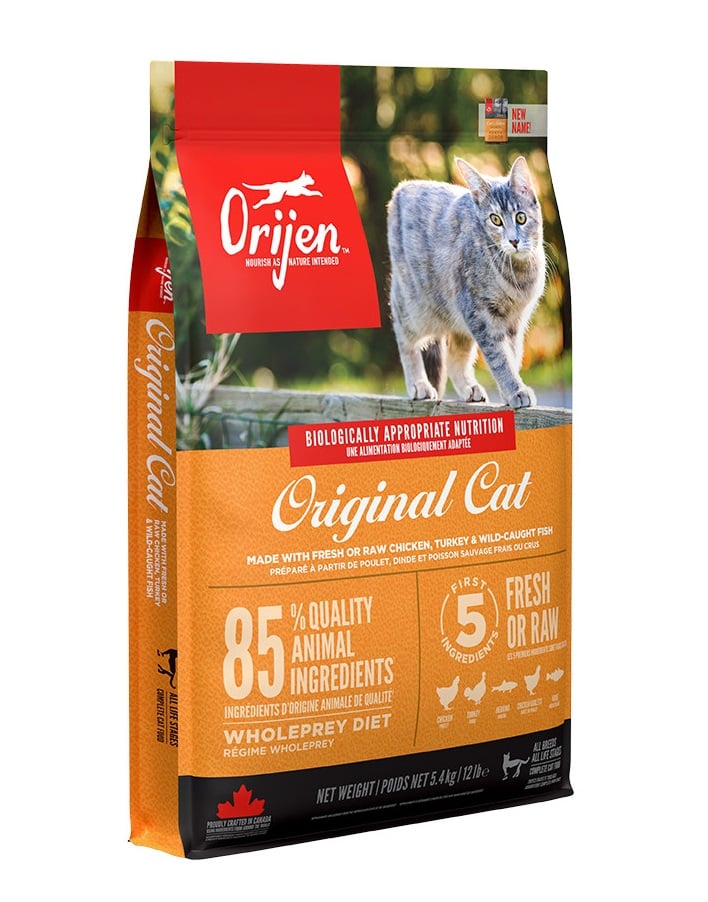 Orijeni spetsialistide loodud uuenduslik koostis põhineb valgurikastel loomsetel toodetel. Orijen Cat & Kitten on toit, mis koosneb 85% ulatuses liha koostisosadest. Nende hulka kuuluvad värske ja terve liha kana, kalkun - nende maksad ning terve ja värske kala, nagu lest ja heeringas. Neid täiendatakse kalkuni- ja kanasüdamega. Ülejäänud 15% koostisest koosneb puu- ja köögiviljadest, mis on valitud nii, et saada võimalikult suur annus vitamiine ja täiendavaid aineid - porgandid, punased õunad, peet, jõhvikad, kõrvitsad kahes variandis, pirnid ja mustikad. Spetsiifilise aroomi annavad lavendel ja roosiõied. Toit on universaalse iseloomuga, st sobib nii kassidele, kes veedavad suurema osa oma ajast siseruumides, kui ka aktiivse eluviisiga kassidele. Orijen ei sisalda teravilja, mis on veelgi tõhusam igapäevaste energiavarude suurendamisel.