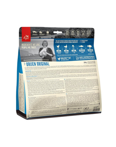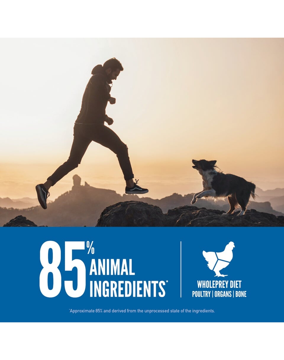 Värske kanaliha (13%), värske kalkuniliha (7%), värske terve muna (7%), värske kanamaks (6%), värske terve heeringas (6%), värske terve lesta (5%), värske kalkunimaks (5%), värske kanakael (4%), värske kanasüda (4%), värske kalkunisüda (4%), kana (dehüdreeritud, 4%), kalkuniliha (kuivatatud, 4%), terve makrell (kuivatatud, 4%), terve sardiin (kuivatatud, 4%), terve heeringas (kuivatatud, 4%), terved punased läätsed, terved rohelised läätsed, terved rohelised herned, läätsekiud, terved kikerherned, terved kollased herned, terved pinto oad, terved valged oad, heeringaõli (1%), kanarasv (1%), kanarõigas (1%), kanamaks (külmkuivatatud), kalkunimaks (külmkuivatatud), värske terve kõrvits, värske terve muskus, värske terve suvikõrvits, värske terve pastinaak, värske porgand, värske terve punane õun, värsked terved pirnid, värske lehtkapsas, värske spinat, värsked peedilehed, värsked naeriselehed, pruunvetikas, terved jõhvikad, terved mustikad, terved saskatoonmarjad, sigurijuur, kurkum, püha ohakas, harilik kobarajuur, lavendlilill, valerianijuur, roosiõied.