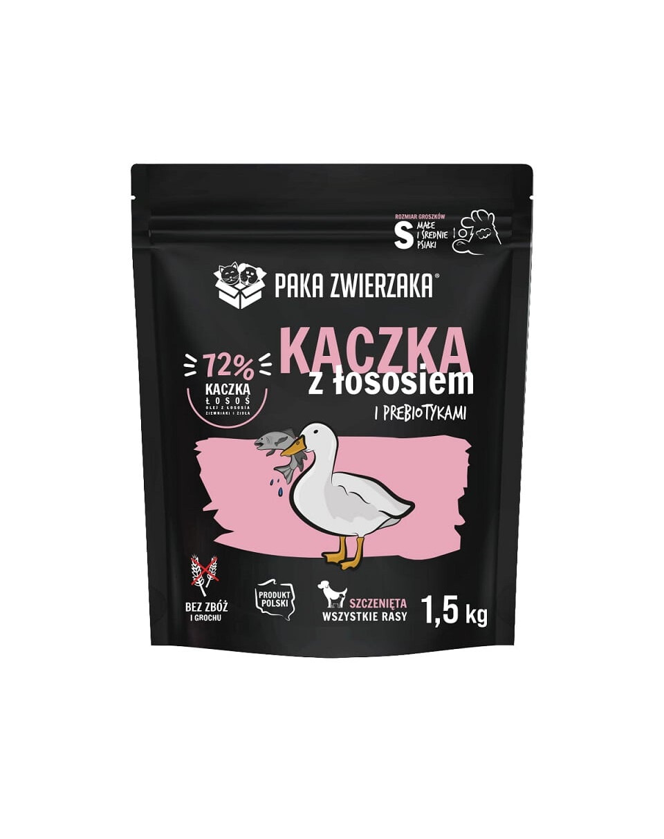 Täiuslikult tasakaalustatud SUPERPREMIUM kvaliteediga kuivtoit, mis ei sisalda teravilja, hernest, maisi, soja, säilitusaineid ega kunstlikke värvaineid kutsikatele. Kohalikelt tarnijatelt hangitud tippkvaliteediga pardiliha, lõhe, köögiviljad ja maitsetaimed tagavad kõrge maitseomaduste ja kerge seeditavuse. Ideaalne koostis õrna kõhuga ja teraviljatalumatusega koertele.
