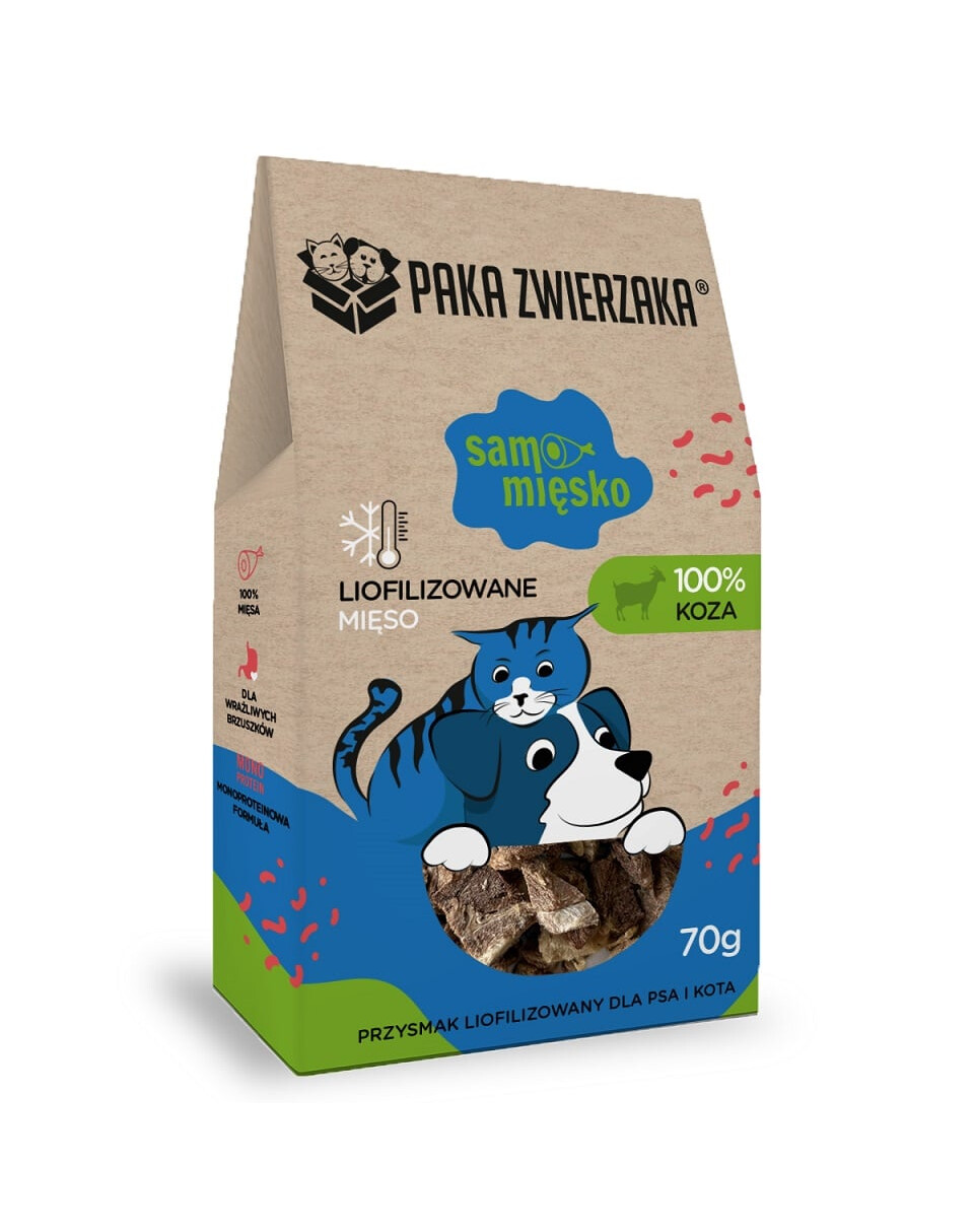 Samo Liha – 100% Kitses on kõrge kvaliteediga, monokomponendiline maius koertele ja kassidele, mis on valmistatud ainult kitse lihast. Toode ei sisalda säilitusaineid, värvaineid, teravilju ega mingeid kunstlikke lisaaineid. Liofiliseerimise protsessi tõttu säilitab liha oma looduslikud toiteväärtused, maitse ja aroomi, mis kutsub esile isegi kõige nõudlikumate loomade huvi.