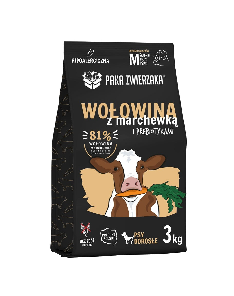 Täiuslikult tasakaalustatud SUPERPREMIUM kvaliteediga kuivtoit, mis ei sisalda teravilja, herneid, maisi, soja, säilitusaineid ega kunstlikke värvaineid. Kohalikelt tarnijatelt hangitud tippkvaliteediga veiseliha, köögiviljad ja maitsetaimed tagavad kõrge maitseomaduste ja kerge seeditavuse. Ideaalne koostis tundliku kõhuga ja teraviljatalumatusega koertele.