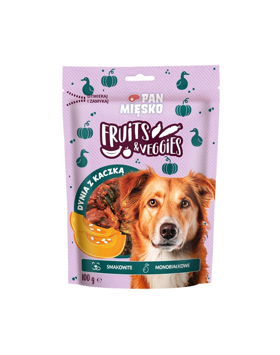 Kas su koer armastab ebatavalisi maitsekooslusi? Ta armastab kindlasti aromaatseid maiuseid Pan Mięsko FRUITS & VEGGIES! Puuviljad ja köögiviljad maitsvates lihakildudes on tõeline pidu maitsemeelte jaoks. Maiused on suurepärane preemia treeningu ajal, aga ka mõte suupisteks sinu lemmiku söögikordade vahel.