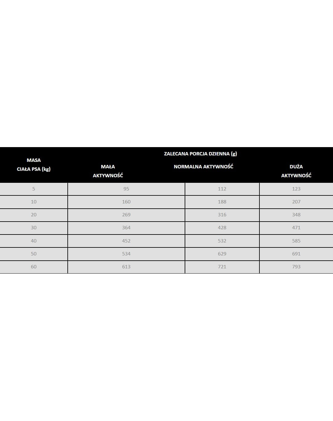 Esitatud päevane vajadus tabelis on suunislik. Iga koer on erinev ja tal on erinevad vajadused. Jälgi oma lemmiklooma ja suurenda või vähenda tema päevast toidukogust vajadusel. Ära unusta tagada talle pidev juurdepääs värskele veele!