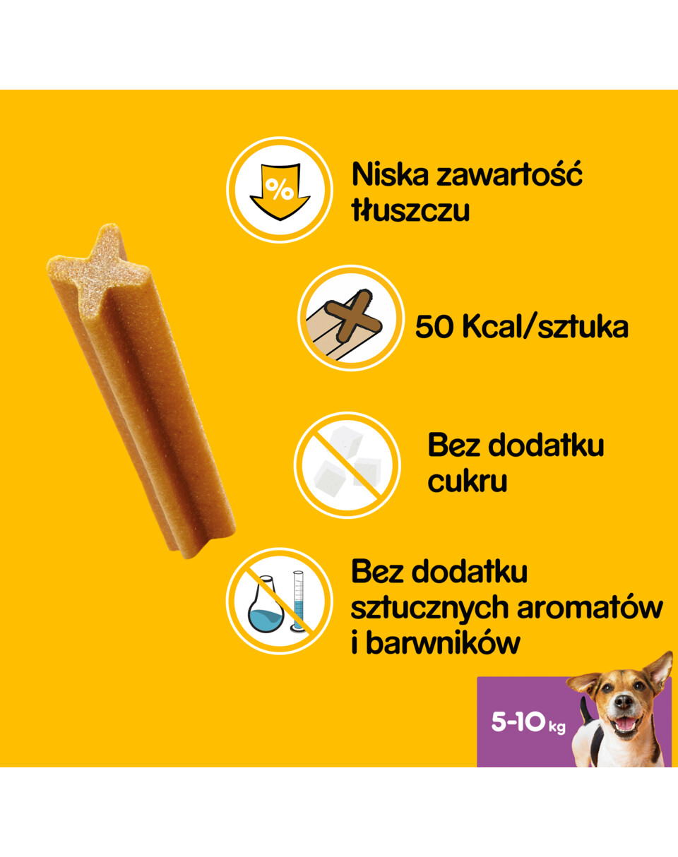 PEDIGREE DentaStix Daily Oral Care on täiendsööt üle 4 kuu vanustele koertele. Selle maiuse suurus on mõeldud ainult 5–10 kg kaaluvatele koertele. Pedigree DentaStix mõjutab positiivselt teie koera hambaid ja igemeid – puhastab ning vähendab hambakivi teket. PEDIGREE DentaStixiga hoolitsete tõhusalt oma koera tervise ja elujõu eest.