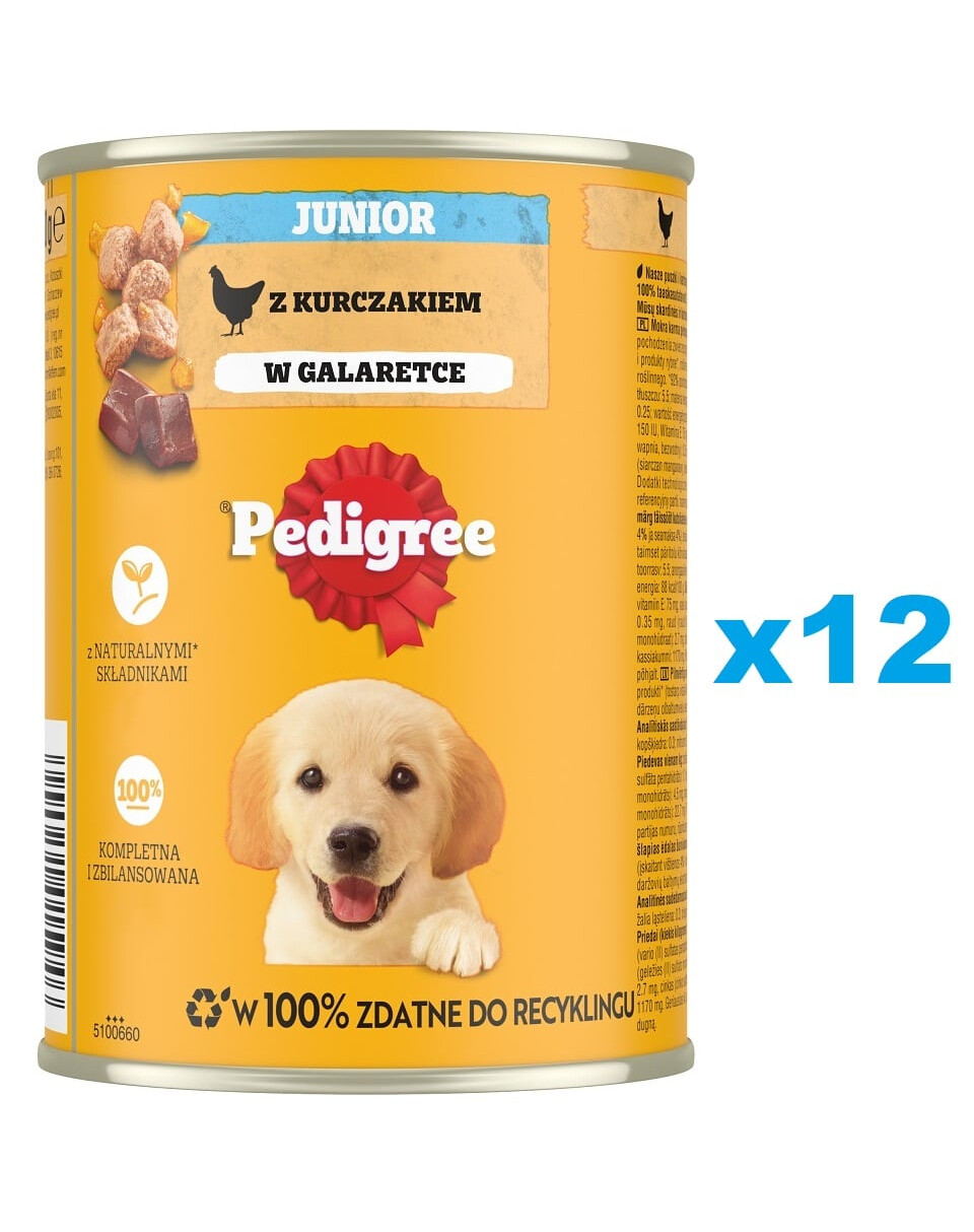 PEDIGREE Junior märgtoit on toit, mis vastab kasvavate koerte vajadustele. Teie lemmikloom naudib õrnu, lihaseid tükke kanaga aromaatses tarretises. Toidud sisaldavad kergesti seeditavat kana, mida arenev seedetrakt kergesti omastab. Retsept sisaldab E-vitamiini, millel on antioksüdantsed omadused ja mis toetab organismi loomulikke kaitsemehhanisme. Tasakaalustatud kaltsiumi- ja fosforikogused toetavad tugevaid luid. PEDIGREE Junior'i söötmisega aitate oma lemmikloomal üles kasvada tervena ja õnnelikuna. Toit on välja töötatud WALTHAMi loomakasvatuse instituudi veterinaararstide ja toitumisspetsialistide poolt.