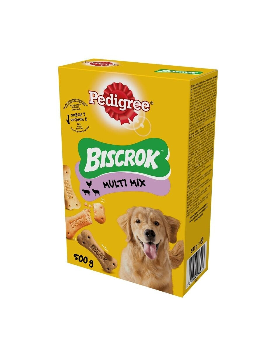 PEDIGREE Biscrok Multi Mix on maitsev küpsis koertele 3 variandis: kana-, veise- ja lambaliha maitsega. Omega-3-rasvhapete sisaldus aitab hoida teie lemmikut terve elu heas vormis. Hõrgutised sisaldavad kaltsiumi, mis on oluline tervete hammaste ja tugevate luude jaoks. PEDIGREE Biscrok Multi Mixiga võite olla kindel, et annate oma koerale väärt suupisteid.