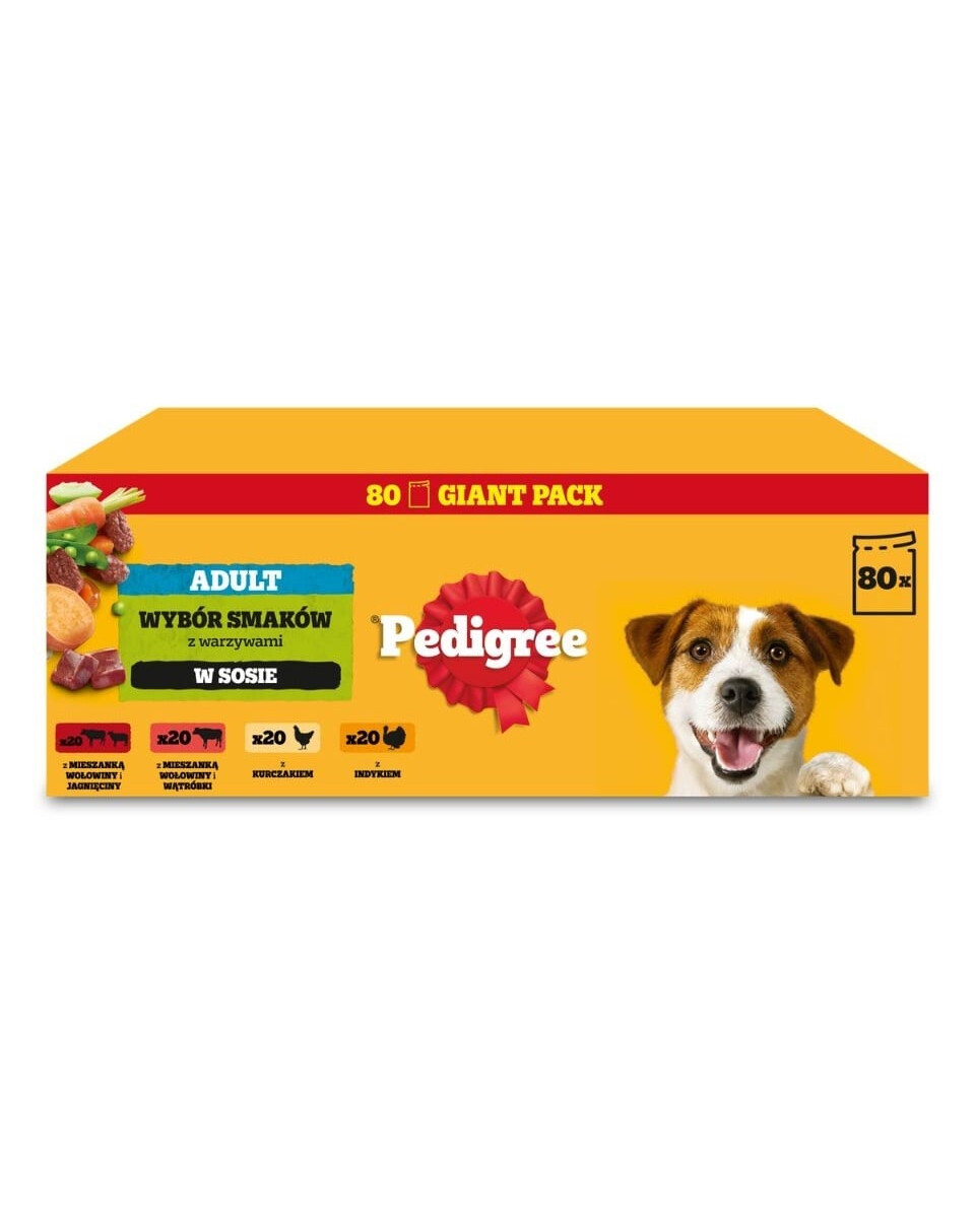 EMärg toit täiskasvanud koertele Pedigree liha tükkidega kastmes< /STRONG> on täielik ja tasakaalustatud ning sisaldab prebiootikume. Meie kastmes retseptid on rikastatud supertoitudega, sealhulgas õunad — C-vitamiini ja kiudainete allikas — ning maguskartul, kaaliumi allikas.< /P> EEelised:< /STRONG> EVeise- ja lambaliha ning porgandi segu EVeise- ja maksasegu ning köögiviljad. EKana ja köögiviljadega. EKalkuni ja porgandi segu. ELisa kg kohta:< /STRONG> Toidulisandid: D-vitamiin D₃:187IU, E-vitamiin:28mg, Vask (Viiest veesoolast vask(II) sulfaadi):1.6mg, Jood (kaltsiumjoodid, veevaba):0.26mg, Raud (raud(II) sulfaadi, monohüdraat):3.4mg, Mangaan (mangaani(II) sulfaadi, monohüdraat):2mg, Tsink (tsink(II) sulfaadi, monohüdraat):15.9mg. < /P> EAnalüütilised koostisosad (%):< /STRONG> valk: 7; rasvasisaldus: 3.8; anorgaaniline aine: 1.7; toorkiud: 0.4; niiskus: 83; energiasisaldus: 75kcal/100 g. < /P> ESoovitatav päevane toiduhulk:< /STRONG> 1 pakk võib asendada umbes 20 g PEDIGREE kuiva toitu.< /P> EArvesse tuleb võtta maiustest saadud kaloreid. Toiduhulgad on antud ainult juhisena. Toiduhulka tuleb kohandada koera vanuse, suuruse ja aktiivsuse taseme järgi. Lisainformatsiooni saamiseks külastage meie veebisaiti. Tagage värske joogivesi. Serveeri toatemperatuuril, kasutamata osa hoidke külmkapis kuni 2 päeva.