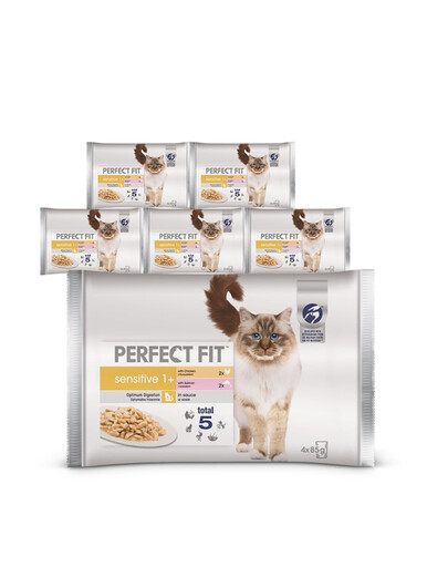 PERFECT FIT Sensitive skonservai 24x85g - šlapias kačių maistas padaže (vištiena, lašiša)