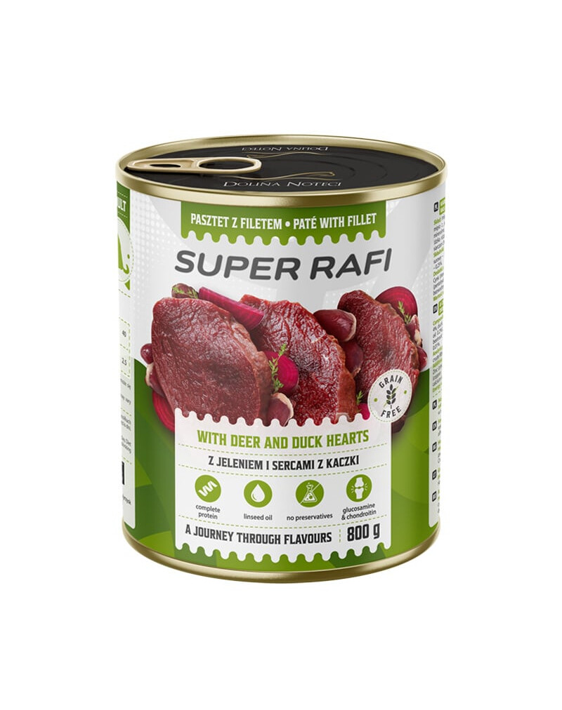 Super RAFI Pasteet Türgi Filee, Hirve ja Partide Südamega Täiskasvanud Koertele 400g