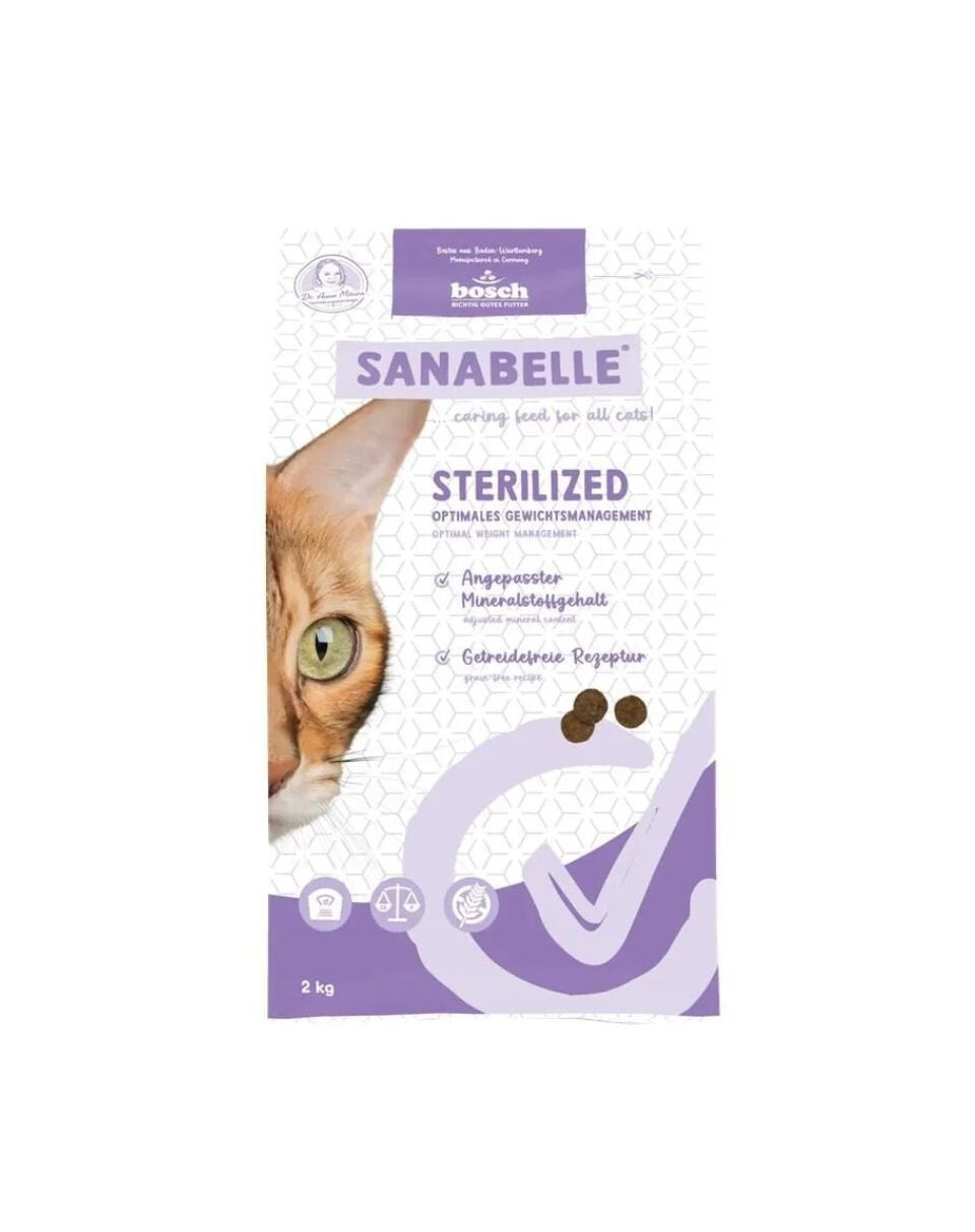 Sanabelle Sterilized on täisväärtuslik kuivtoit, mille retsept on spetsiaalselt kohandatud kassidele pärast steriliseerimist või kastreerimist. Pärast protseduuri muutub kassi energiavajadus oluliselt – ainevahetus aeglustub ja isu sageli suureneb. Seetõttu on see koostis välja töötatud, et tagada küllastustunne madalama kalorsusega, samal ajal pakkudes kõiki vajalikke toitaineid.