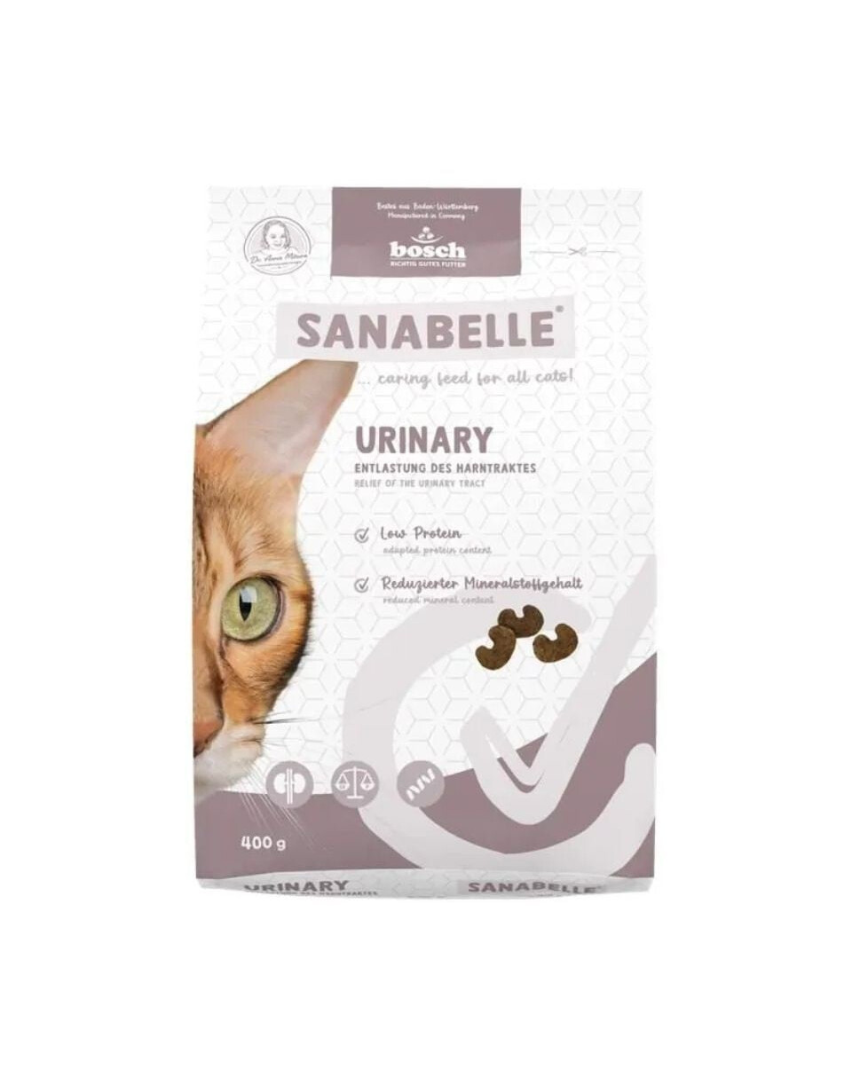 Sanabelle Urinary on spetsialiseeritud kuivtoit täiskasvanud kassidele, kes vajavad toetust kuseteede tervise säilitamiseks. Tänu vähendatud kaltsiumi, fosfori ja valgu sisaldusele kergendab toode neerude tööd ja aitab säilitada õiget uriini pH-d, mis vähendab kuseteede kivide tekkimise riski.