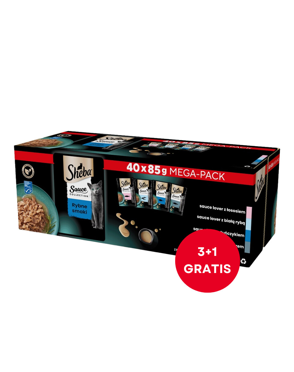 Sheba Sauce Collection Fish Flavours on segu hoolikalt valitud, õrnadest tükkidest maitsvas kastmes. Toitude ettepanek 4 maitsevariandis, tükid koos: lõhe, valge kala, tuunikala, tursaga, rõõmustab ka kõige nõudlikumate kasside maitseid. Sheba Sauce Collection Fish Flavours meistriretsepti saladus on kvaliteetsed looduslikud koostisosad ning vitamiinid ja mineraalid. Iga kotike sisaldab toitaineid, mis toetavad teie kassi nõuetekohast funktsioneerimist. Laske oma kassil nautida kulinaarset naudingut maitsva Sheba Sauce Collection Fish Flavours'iga, mis rahuldab ka kõige nõudlikuma söögiisu.