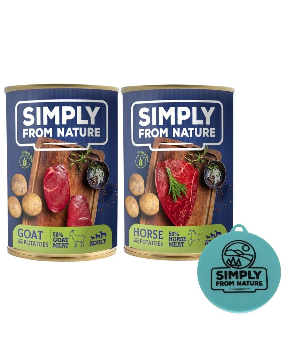 50% hobuseliha (sellest: 60% lihasliha, 20% kopsud, 9% süda, 5% kõri, 4% hingetoru, 2% maks), 50% kartulid.