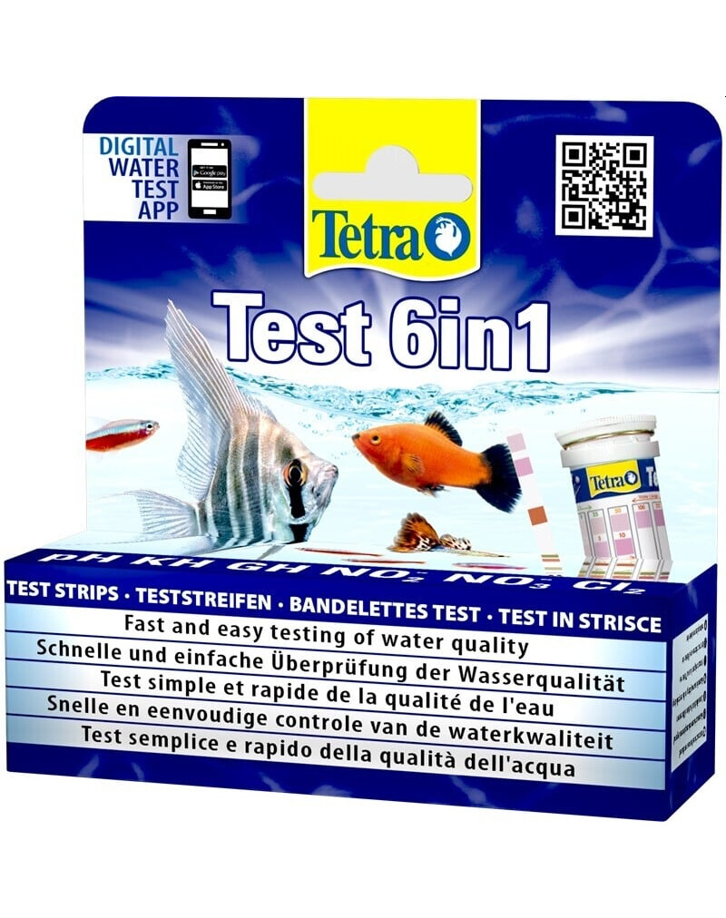 Tetra testribad võimaldavad teil kiiresti ja lihtsalt testida kuut kõige olulisemat tiigivee parameetrit ühe lihtsa sammuga: kastke ribad lihtsalt vette ja liigutage seda ühe kuni kahe sekundi jooksul, seejärel raputage vesi ribalt maha ja lugege 60 sekundi pärast kõige olulisemate parameetrite andmed maha. Tulemust saab võrrelda värvikaardiga, et määrata kindlaks, millised väärtused jäävad ohutusse vahemikku. Mõõdab akvaariumivee pH-taset, üld- ja karbonaatkaredust (GH + KH), nitriidi (NO2-), nitraadi (NO3-) ja kloori (Cl2) sisaldust. Akvaariumiorganismid, näiteks kalad, reageerivad tugevalt pH-taseme liigsetele muutustele, mis mõjutab nende heaolu. Kogukaredus mõjutab kalade elutähtsaid funktsioone, samas kui karbonaatkaredus kujundab otseselt pH väärtuse stabiilsust (pH-puhver). Testribad mõõdavad ka nitriti- ja nitraadisisaldust akvaariumivees. Nitrit on väga kahjulik, isegi väikestes kontsentratsioonides, ja seda ei tohiks vees olla tuvastatavas koguses. Nitraadid on biogeensed ained, mis soodustavad taimede kasvu. Liigne NO3- võib aga olla kaladele kahjulik ja soodustada vetikate liigset kasvu. Vees võib olla ka kloor, mis on ohtlik kaladele ja taimedele. Nagu nitriti puhul, ei tohiks ka siin vees olla tuvastatavas koguses kloori. Tetra Aquatics'i rakendust saab kasutada ka vee parameetrite kiireks ja usaldusväärseks lugemiseks nutitelefoni kaudu.