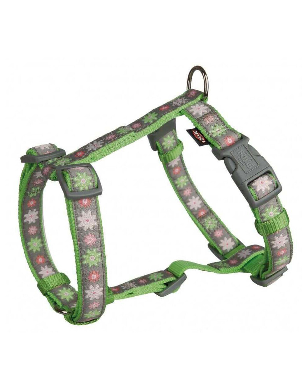 Äärmiselt vastupidav nailonist koerarihm. Trükitud motiiviga. Täielikult reguleeritav. Värv: roheline Motiiv: hall lilledega.